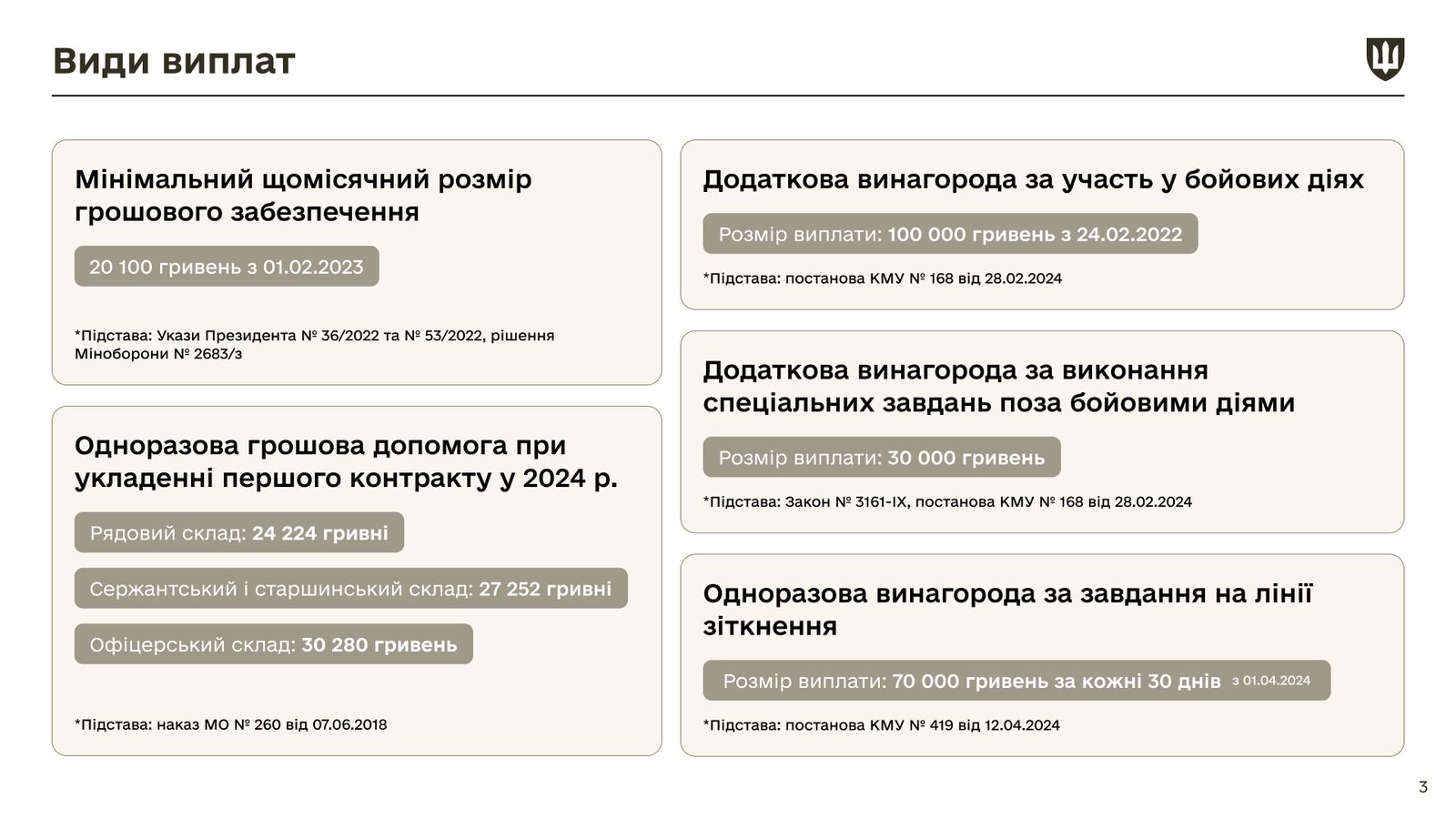 Дополнительное вознаграждение за участие в боевых действиях – 100 000 грн.