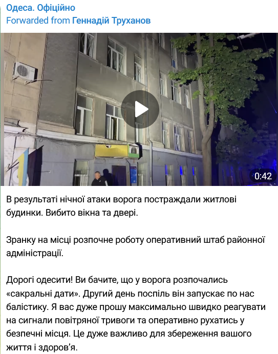 Напомним, 29 апреля россияне атаковали Одессу баллистической ракетой "Искандер" с кассетным боезарядом. Погибли пять человек. В Одессе и области 30 апреля объявили траур.