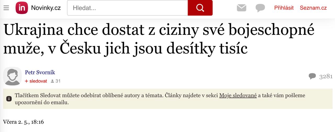 Чехия не поддерживает украинских мужчин, которые пытаются избежать мобилизации.