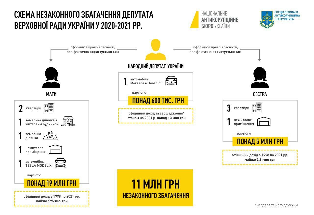 НАБУ сообщает о вручении народному депутату подозрения в незаконном обогащении на более 11 млн грн.