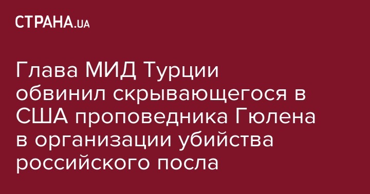 Министр иностранных дел Турции Мевлют Чавушоглу обвинил скрывающегося в США проповедника Фетхуллаха Гюлена в организации убийства посла России Андрея Карлова. Об этом сообщает РИА Новости со ссылкой на дипломатический источник в столице Турции.