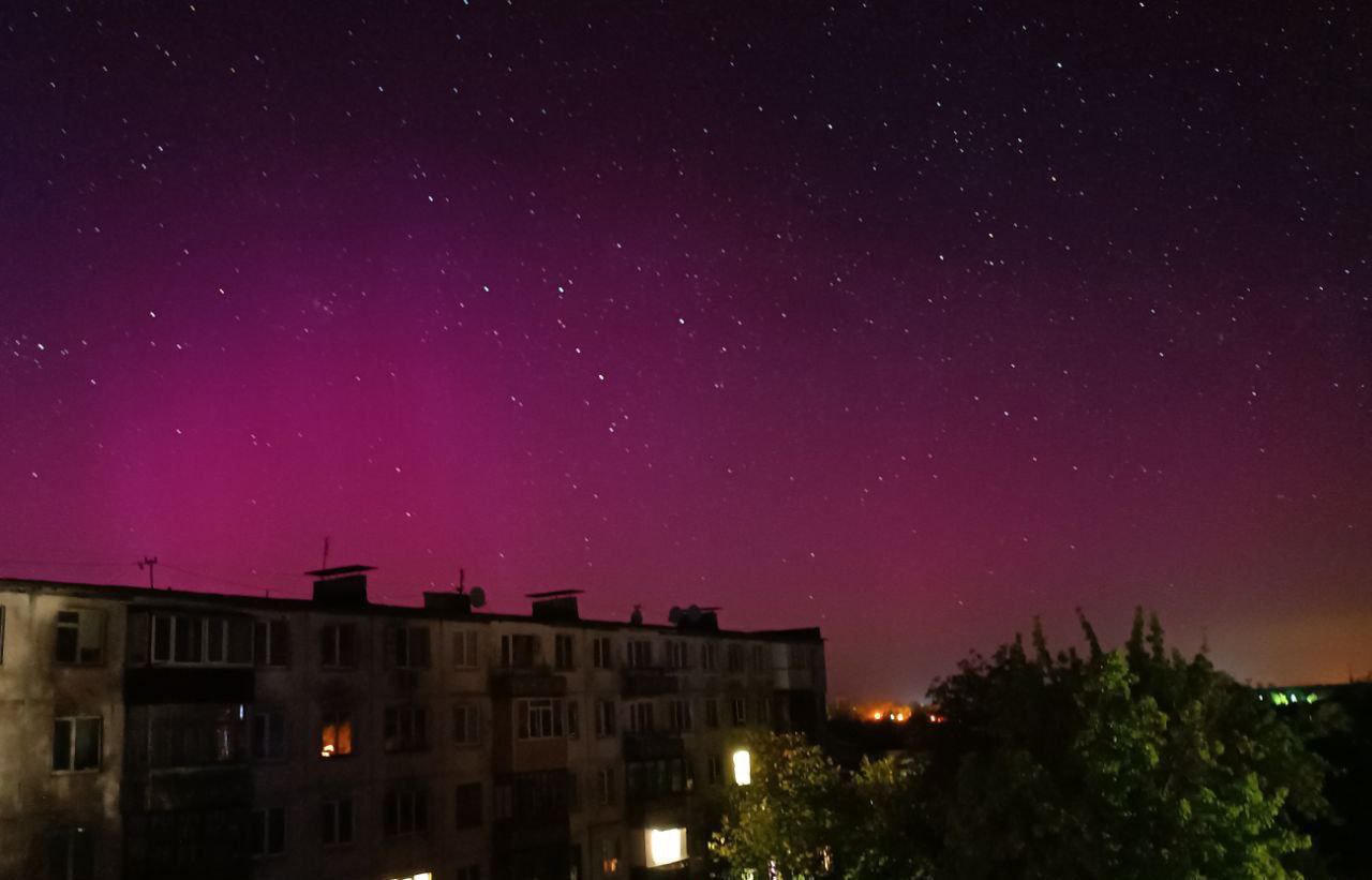 Тем временем публикуются новые кадры свечения над Украиной, больше похожего на северное сияние.