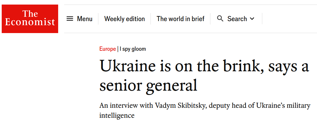 "Украина на грани" - с таким заголовком выпустил журнал The Economist интервью с представителем Главного управления разведки (ГУР) Министерства обороны Вадимом Скибицким.