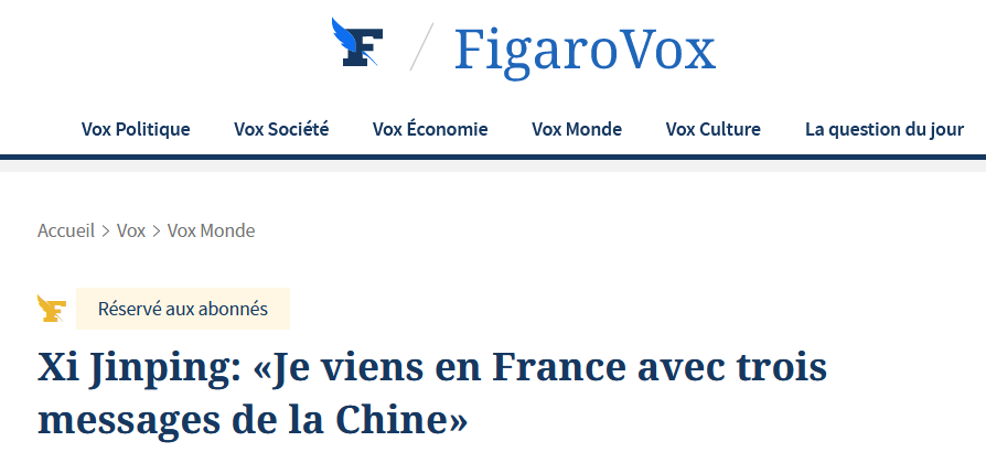 Об этом написал председатель КНР Си Цзиньпин в колонке для французской газеты Le Figaro.