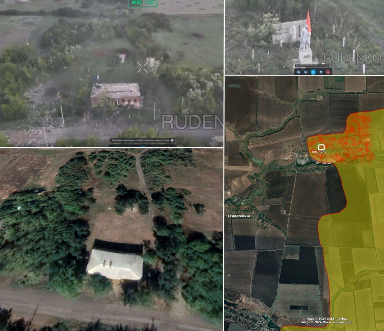 "Южная и западная части села, судя по всему, пока остаются под контролем украинской армии. Часть кадров свидетельствует об ожесточённых атаках на украинские окопы к востоку от Уманского и отход украинских войск на запад по северной стороне озера близ села", — пишет Рёпке.