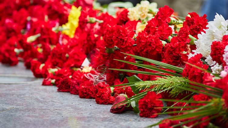 Также там находится венок от президента Украины Владимира Зеленского. Но когда его возложили - сегодня или вчера (когда в Украине был официальный праздник), неизвестно.