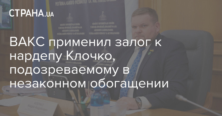 ВАКС применил залог в 12 млн гривен к народному депутату Андрею Клочко ("Слуга народа"), которого НАБУ подозревает в незаконном обогащении на более 11 млн грн.