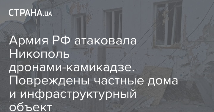 Армия РФ атаковала Никополь дронами-камикадзе. Повреждены частные дома и инфраструктурный объект