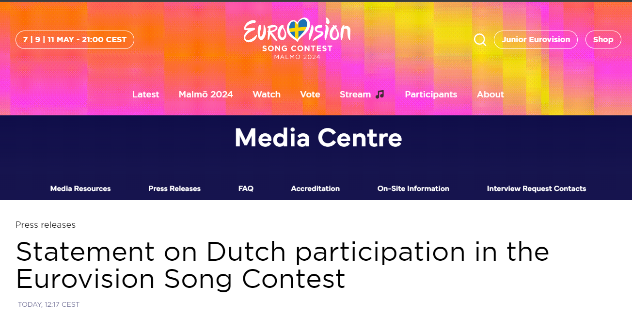 Певец из Нидерландов дисквалифицирован и отстранен от участия в Евровидении-2024