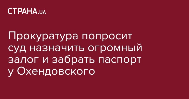"Мы ставим в ходатайстве изъять паспорт для выезда за границу и залог в 1,2 млн", - сказал заместитель руководителя САП Владимир Кривенко. Также он добавил, что прокуратура попросит суд отстранить Охендовского от должности на 2 месяца.
