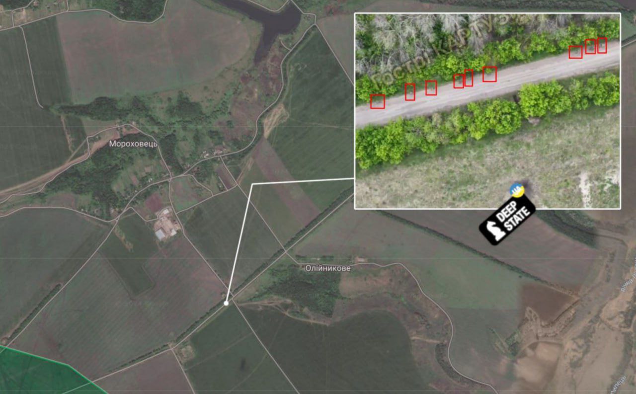 "Дроны Сил обороны фиксируют технику противника в деревне, что свидетельствует о продвижении врага", - пишет Deep State.