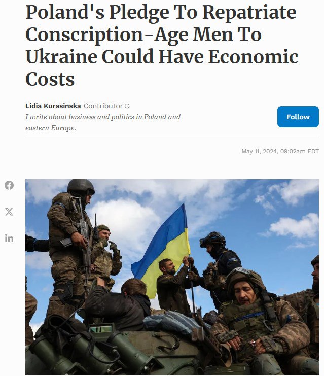 "Это может оказать существенное влияние на польскую экономику, поскольку тысячи украинских граждан, проживающих в стране, могут быть вынуждены оставить работу и пойти в армию", - сообщает издание.