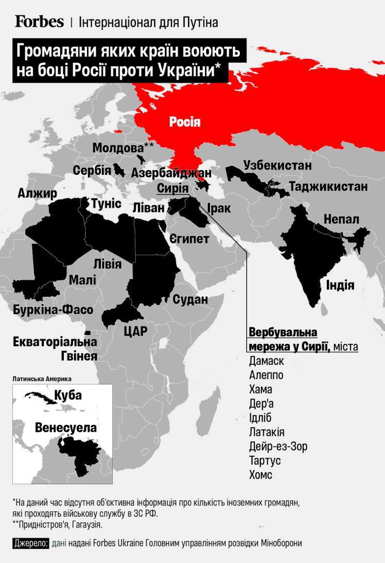 Россия вербует на войну против Украины граждан не менее чем из 21 страны.