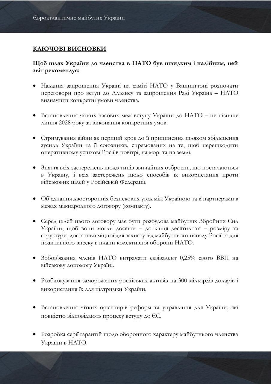 НАТО должно дать приглашение Украине на вступление в Альянс на саммите в Вашингтоне этим летом и закрепить обязательство принять Украину в свои ряды не позднее июля 2028 года.