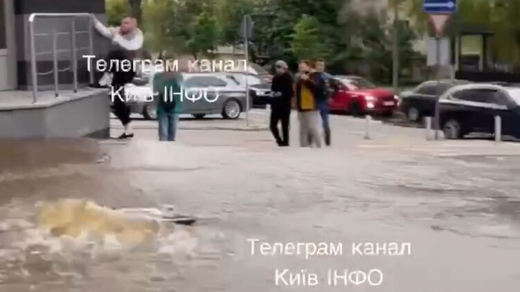 Водопровод в Киеве снова дал течь. Кадр из видео