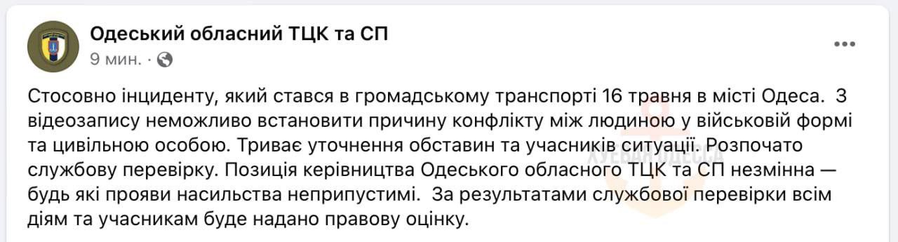 Позже Одесский ТЦК сообщил, что проводит проверку по поводу очередного скандального инцидента с военкомами.