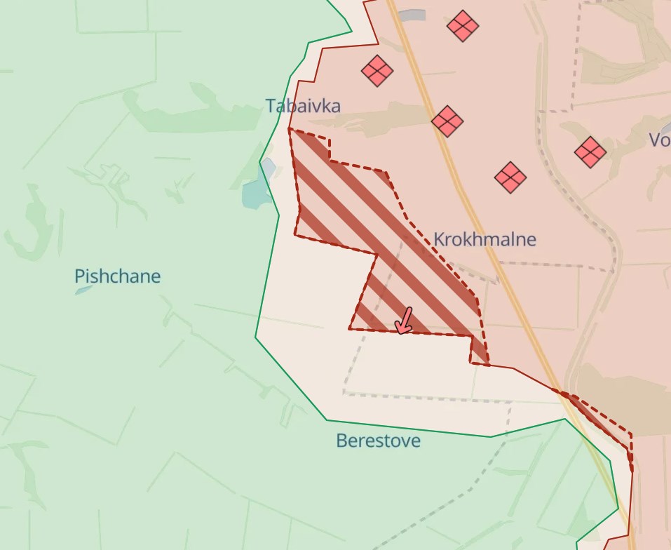 Россияне продвинулись не только на севере Харьковской области, но и на границе с Луганской. По данным Deep State, войска РФ провели атаки в районе Табаевки.