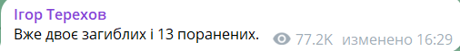 Сегодня днем российские войска ударили по Харькову. В результате обстрела два человека погибли, еще тринадцать получили ранения, среди них четверо в тяжелом состоянии.