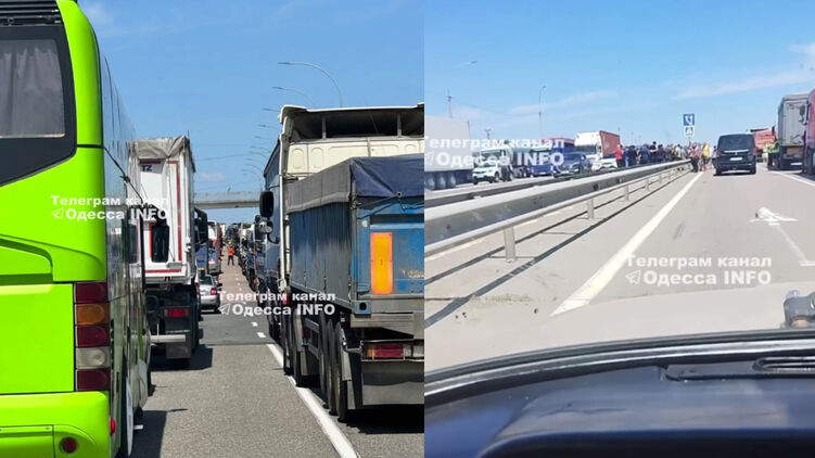 Дальнобойщики устроили акцию протеста на трассе Киев-Одесса. Они вывели на дорогу десятки фур, образовав там огромную пробку. Водители выступают против нового закона о мобилизации.