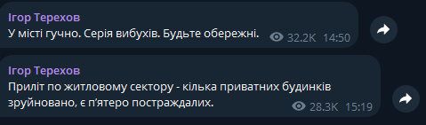 "В Харькове пять пострадавших после прилета по жилому сектору", - заявил мэр Терехов.