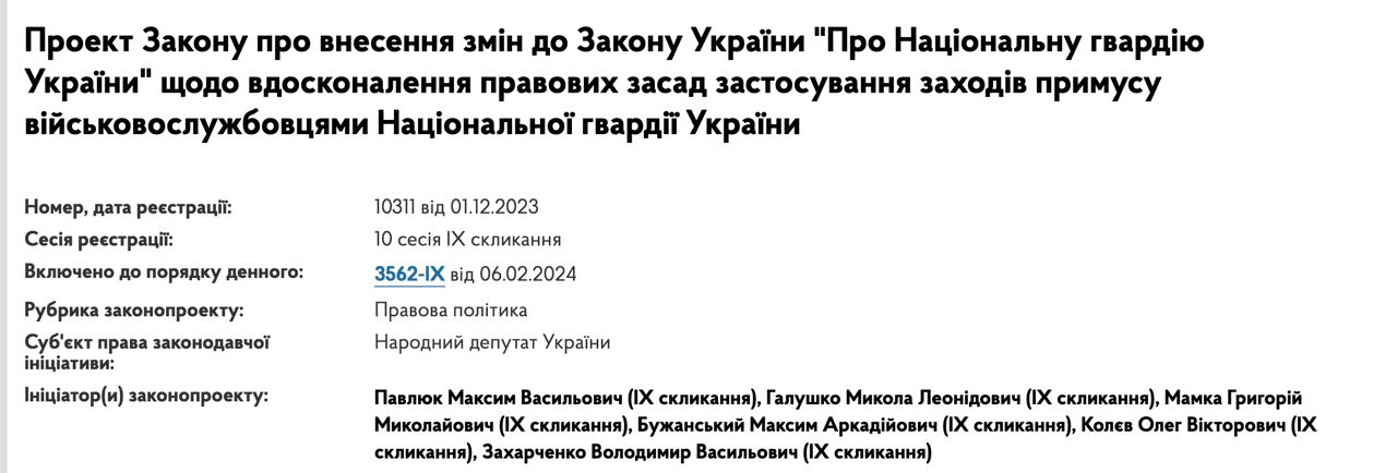Напомним, накануне Верховная Рада приняла в первом чтении законопроект, наделяющий военнослужащих Нацгвардии правом применять средства принудительной остановки автомобиля, водитель которого не выполнил законные требования военнослужащего или пытается избежать прохождения контроля на КПП.