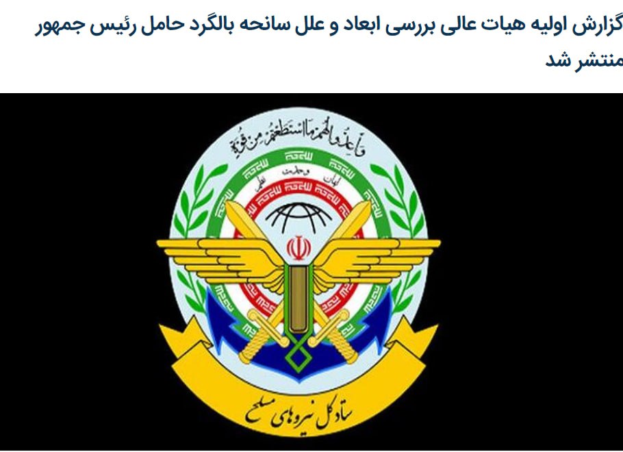 Вертолёт Раиси загорелся только после столкновения с горой, следует из отчёта Генштаба ВС Ирана.