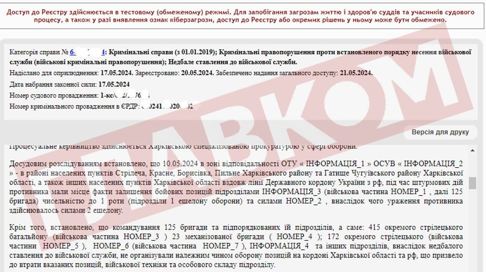 По данным досудебного расследования, 10 мая 2024 года в районе населенных пунктов Стрелка, Красное, Борисовка, Пыльное Харьковского района и Гатище Чугуевского области, а также других населенных пунктов Харьковской области (вдоль линии госграницы Украины с РФ) во время штурмовых действий армии РФ имели место факты оставления боевых позиций подразделениями ВСУ. Речь идет о подразделениях численностью в одну роту, которые входили в состав первого эшелона обороны. В результате этой внештатной ситуации наступление россиян пришлось отбивать силами второго эшелона обороны.
