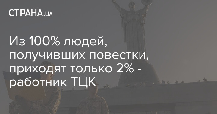 Военный и сотрудник районного ТЦК во Львове Владимир Гренюх заявил, что из 100% людей, получивших повестки, в ТЦК приходят только 2%.