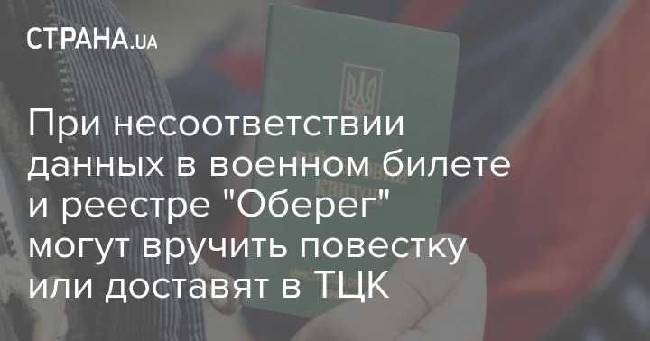 В случае несоответствия данных в военном билете и электронном реестре "Оберег" человеку могут снова вручить повестку или задержать для доставки в ТЦК.
