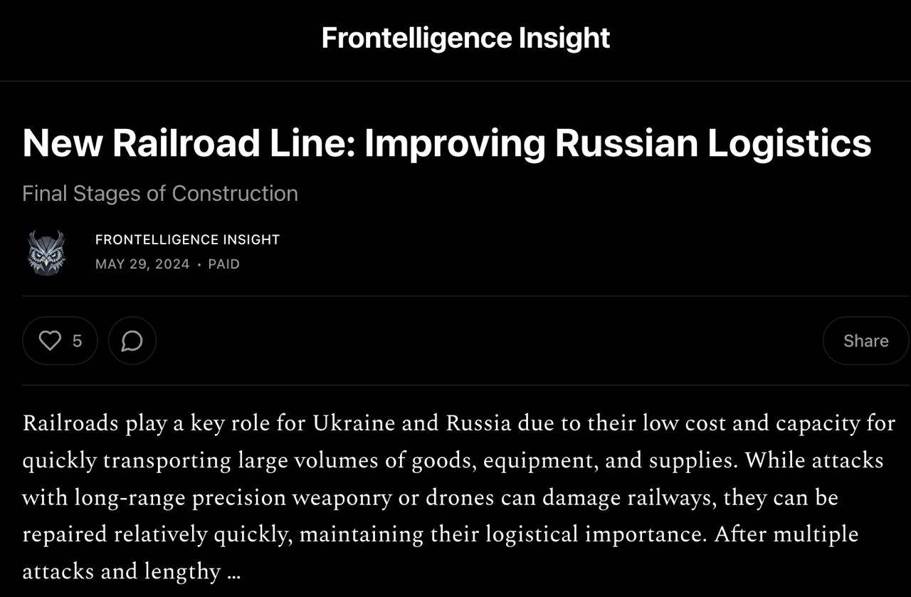 13.37 Россия близка к запуску новой железнодорожной ветки из Донецка в Мариуполь, говорится в отчете Frontelligence Insight.
