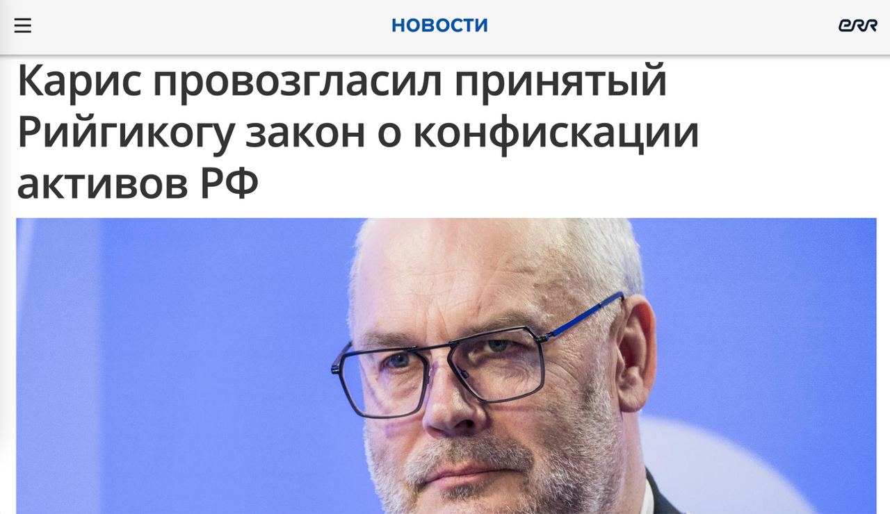 Президент Эстонии Алар Карис подписал закон о возможности передать Украине некоторые активы РФ.