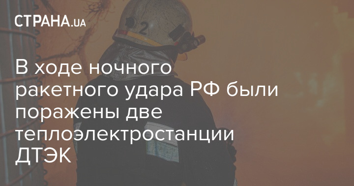 В ходе ночного ракетного удара РФ были поражены две теплоэлектростанции ДТЭК