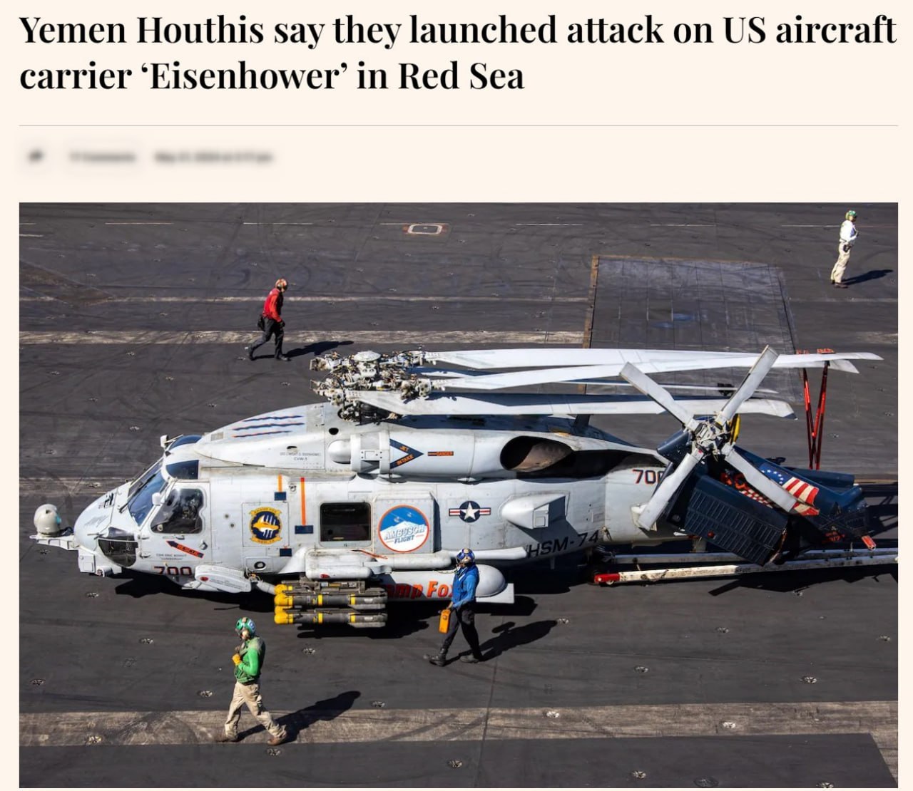 В США этого не подтверждали. Представитель Пентагона в комментарии агентству Reuters заявил, что ему не известно о каком-либо нападении на "Эйзенхауэр".