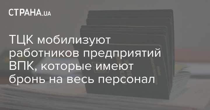 Украинские предприятия военно-промышленного комплекса, имеющие по закону основание бронировать до 100 процентов персонала, заявляют о том, что ТЦК мобилизуют их работников во время сверки данных.