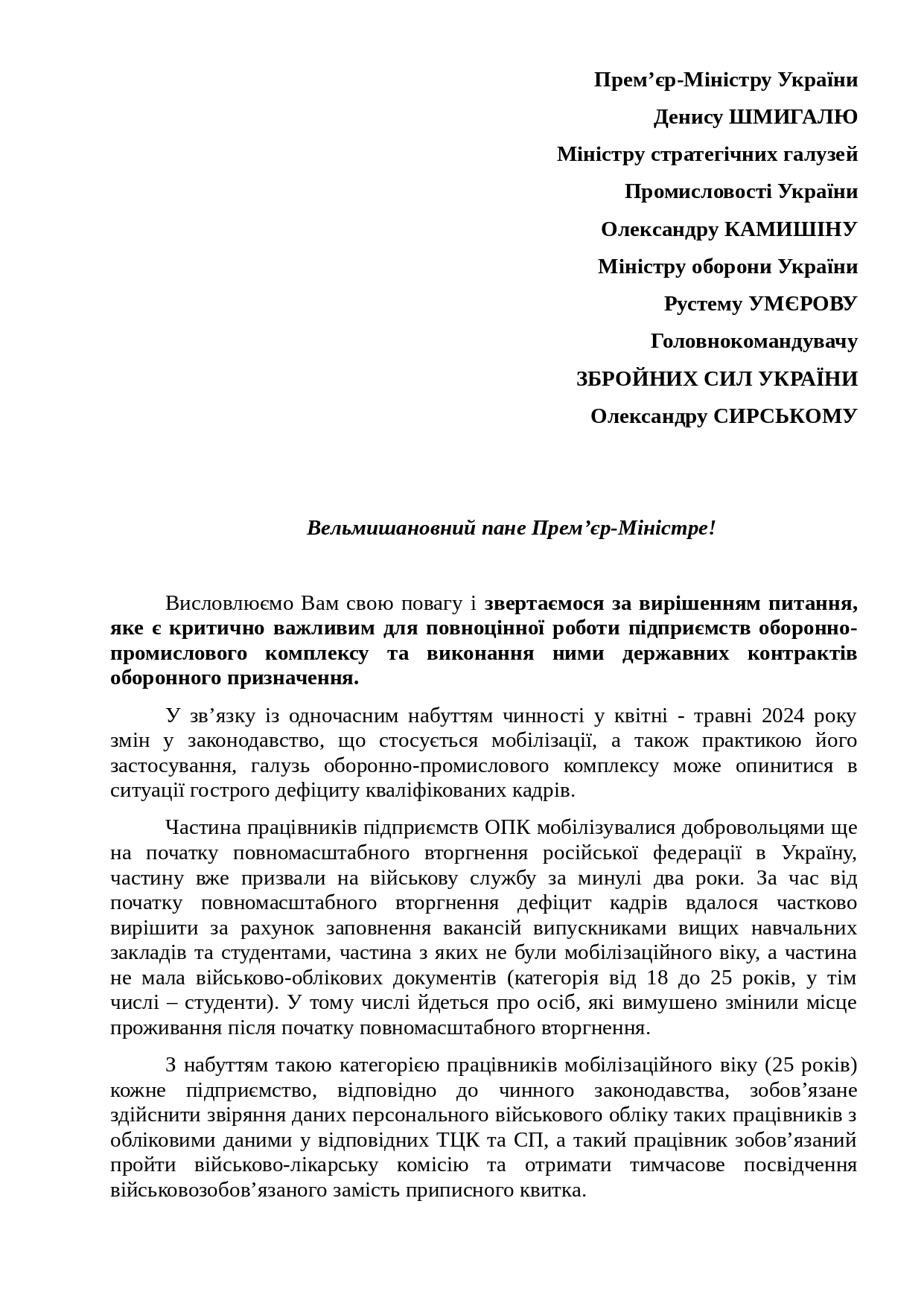 Документ адресован членам Кабмина и главкому ВСУ Александру Сырскому.