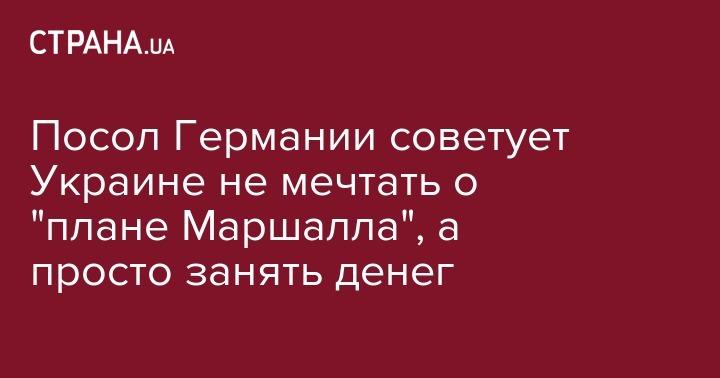 Украина пока не имеет потребности в финансировании по примеру "плана Маршалла", заявил посол ФРГ в Украине Эрнст Райхель.