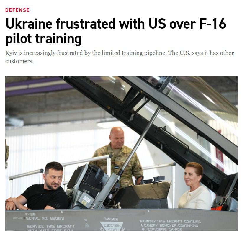 "Украина заявляет, что у нее есть 30 пилотов, которые имеют право немедленно начать обучение в США. Тем не менее, по словам трех человек, непосредственно знакомых с запросом, администрация Байдена заявила Киеву, что в ее программе в Аризоне нет мест для приема более 12 пилотных стажеров одновременно", - говорится в статье.