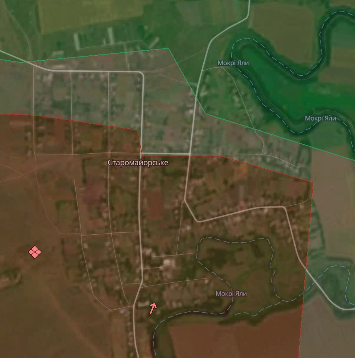 На карте Deep State большая половина села находится под контролем РФ, меньшая - в серой зоне. Только на паре южных улиц отмечено присутствие ВСУ.