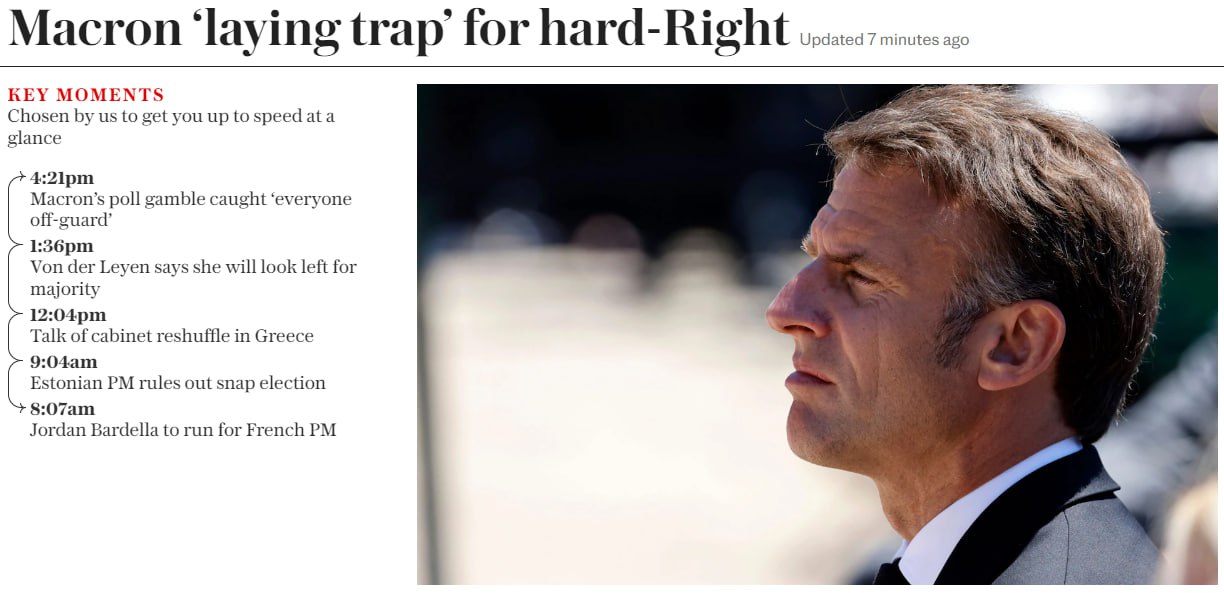 После этого Макрон объявил о роспуске Национального собрания Франции и объявил внеочередные выборы на 30 июня.