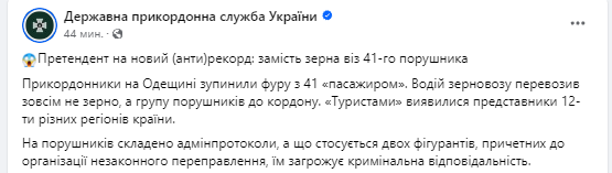 Пограничники в Одесской области остановили фуру, которая везла к границе 41 мужчину. Водитель зерновоза перевозил группу нарушителей для незаконного выезда за границу.