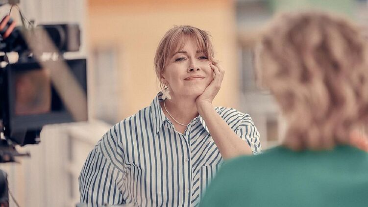 Артистка от имени военнослужащей, боевого медика Юлии Малой с позывным "Пиранька" с рекламных бордов инициативы "Одна за одну" рассказывает о проблемах некомфортного нижнего белья, которое якобы мешает ей выполнять боевые задачи на фронте.