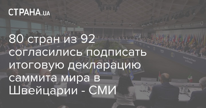 80 стран из 92 участвовавших согласились подписать итоговую декларацию саммита в Швейцарии. Также ее поддержали четыре организации.