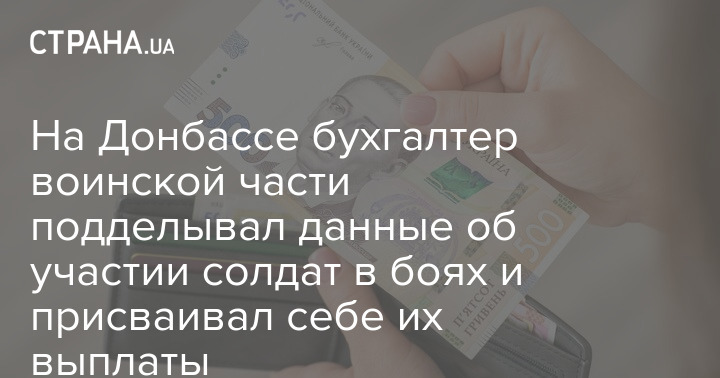 В Донецкой области бухгалтер одной из воинских частей организовал схему по внесению фиктивных данных об участии солдат в боевых действиях, чтобы забирать начисленные им "боевые" себе и другим участникам схемы.