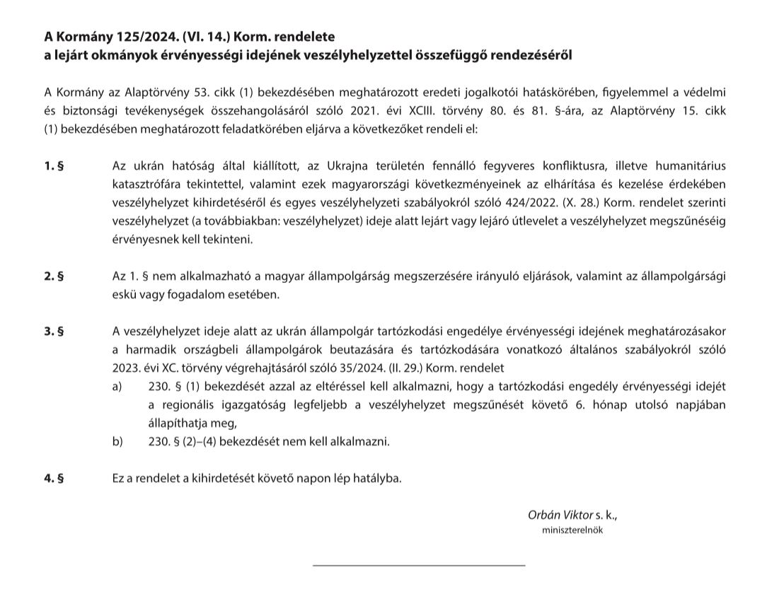 14 июня венгерское правительство издало указ, касающийся действительности загранпаспортов граждан Украины. Согласно указу, удостоверения личности за рубежом считаются действительными во время действия чрезвычайного положения в Венгрии.
