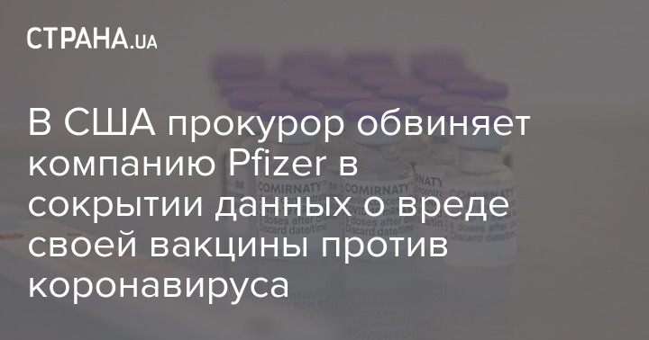 В США прокурор обвиняет компанию Pfizer в сокрытии данных о вреде своей вакцины против коронавируса