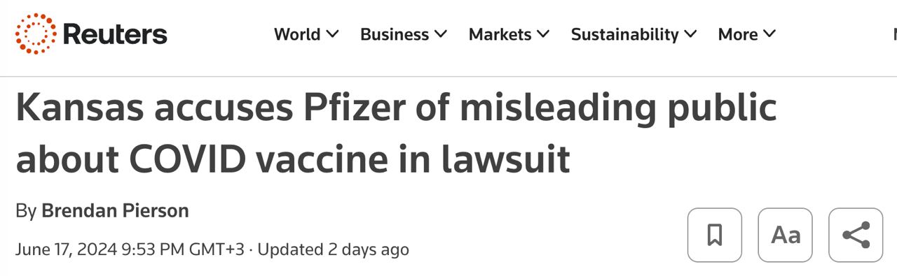Также генпрокурор штата обвинил Pfizer в искажении данных об эффективности вакцинации с целью заработка на людях и потребовал неустановленной денежной компенсации.