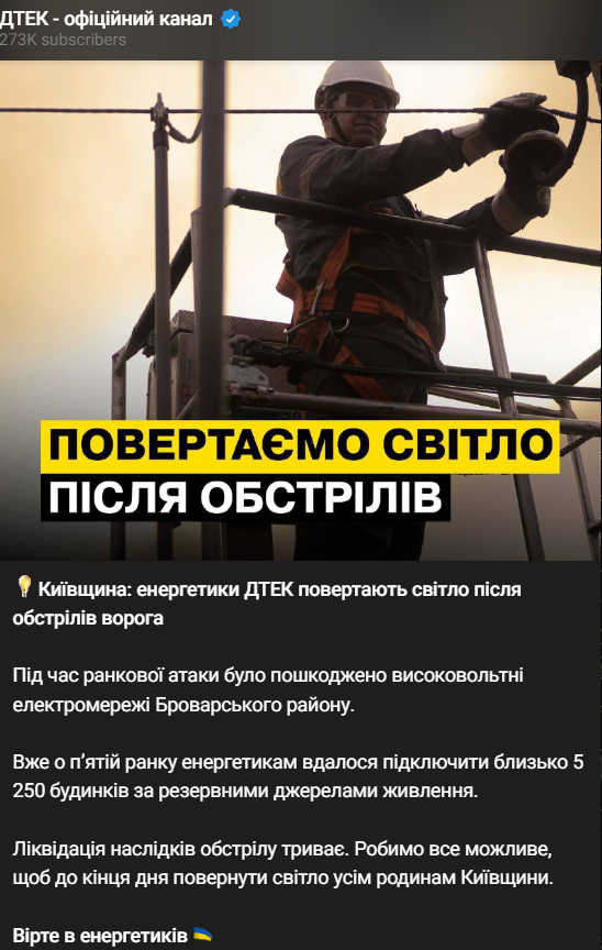 Также о поражении одной из своих электростанций заявляет компания ДТЭК. Ранены трое энергетиков.