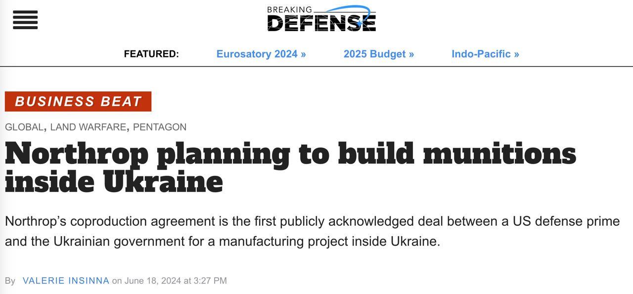 09:27 Первая американская корпорация заявила о планах начать производство боеприпасов в Украине, сообщает Breaking Defence.