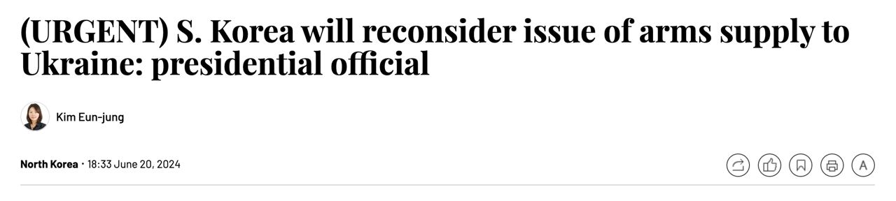 Напомним, в ответ на договор о взаимной обороне между Россией и КНДР Южная Корея заявила, что рассматривает возможность поставок оружия Украине.