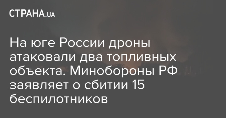 На юге России дроны атаковали два топливных объекта. Минобороны РФ заявляет о сбитии 15 беспилотников